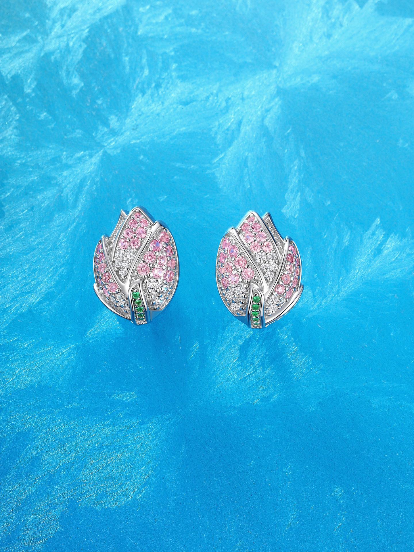 3D Flower Ear Studs 925 Silver Full Pave Colored Diamonds Luxury