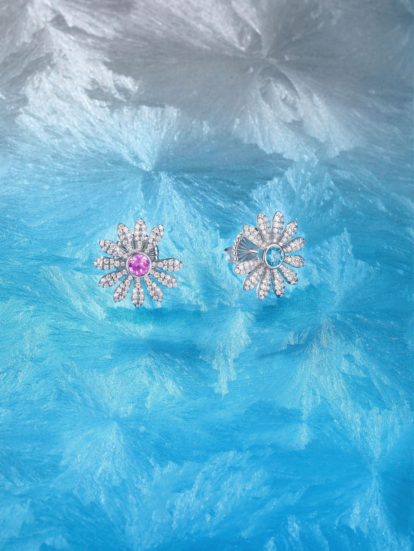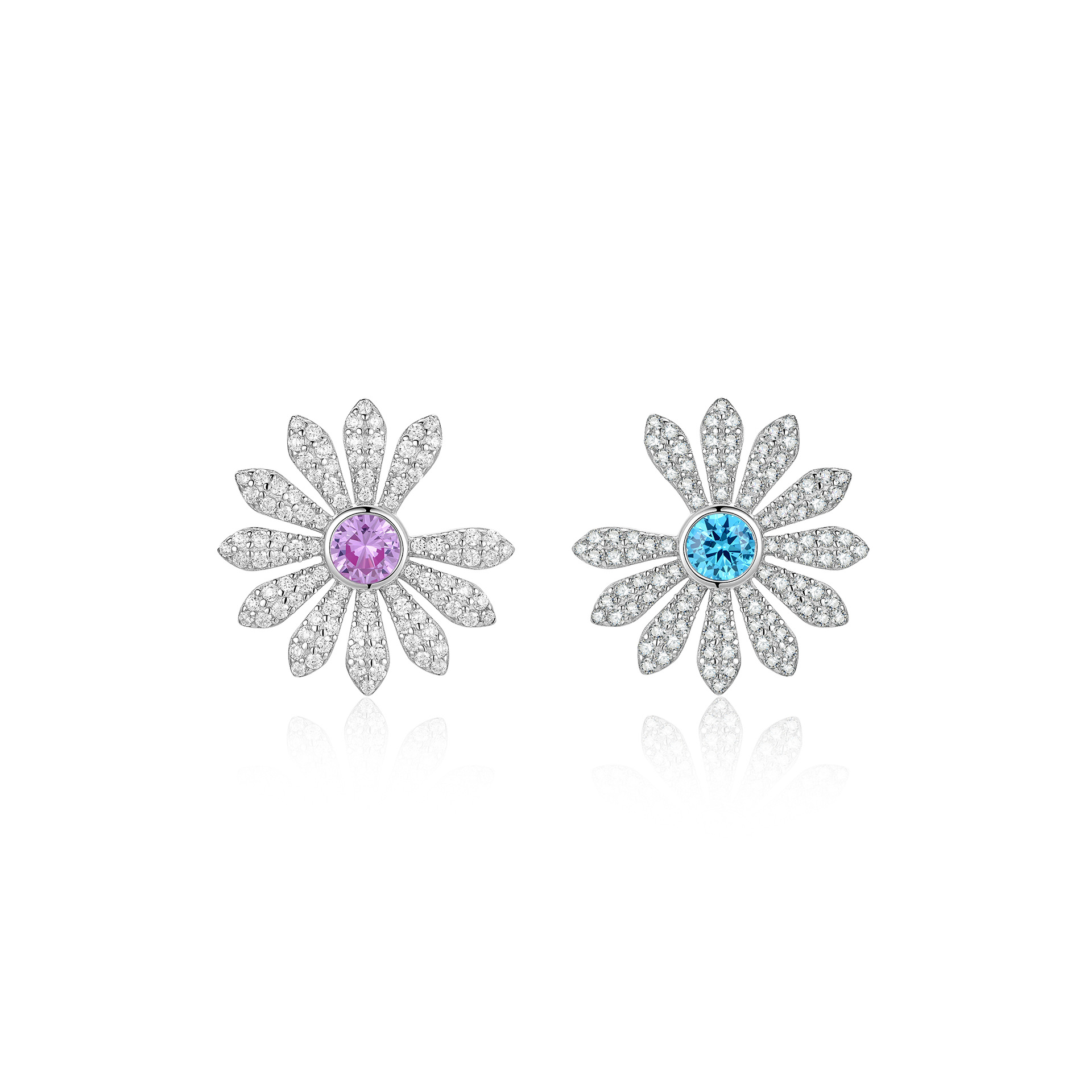 GD Style Daisy Earrings 925 Silver Yellow & Pink Blue Diamond Pave